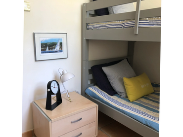 Down the spiral staircase you’ll find the kid’s level. There’s a bedroom with a bunkbed the kids will love but we suggest only for children over 6. Their own bathroom is steps away, with toilet and shower for their exclusive use.